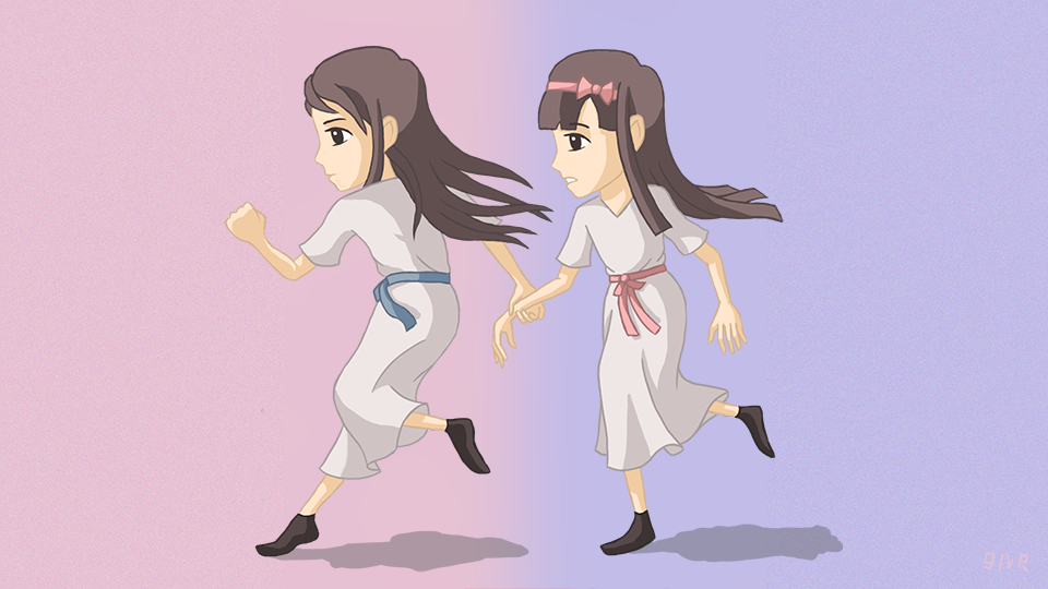 Elle y fera la rencontre de sa jumelle Hina, dont la présence est assez fantomatique, ainsi que de son ami imaginaire, prenant la forme d'une ombre avec un haut-de-forme.